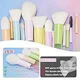 - Upgrade your beauty routine with this 18-piece professional makeup brush set in a colorful and stylish design. The set includes every brush you need for flawless face and eye makeup: Face Brushes: Tapered Powder Brush, Pointed Top Kabuki, Angled Fluff Brush, Angled Powder Brush, Flat Top Blush Brush, Foundation Brush Eye & Detail Brushes: Angled Shadow Brush, Eyebrow Brush, Pencil Brush, Mini Flame Brush, Concealer Brush, Blending Brush, Mini Concealer Brush, Flat Eyeliner Brush, Detail Brush, Small Lip Brush, Eyeliner Brush, Eyebrow & Eyelash Brush Bonus Tools: 2 soft makeup sponges for liquid foundation Crafted with soft synthetic fibers, these brushes deliver smooth application, excellent powder pickup, and seamless blending—ideal for powders, liquids, and creams. The pastel aluminum ferrule and semi-transparent rubber-coated handle provide durability, a comfortable grip, and a chic look. This set comes with a portable mesh storage bag and a gift-ready packaging box, making it perfect for everyday use, travel, or as a thoughtful gift for women, teens, beginners, and professional makeup artists. Whether you want a natural everyday look or a glamorous full-face finish, this makeup brush set with sponges has all the tools you need to bring your makeup ideas to life.