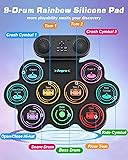 - Anpro Electric Drum Set Bluetooth: 9 Drum Pad with Dual Stereo Speakers, Roll-up Electronic Drum Kit with Drum Pedals Drum Sticks, Support Headphone/MIDI Practice, Gift for Children and Adult Beginner