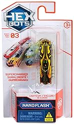 HEX BOTS NANO FLASH The clock as these autonomous robot robot toys use vibration technology to explore any stagnation and crawl, or create your own playground and explore this crawl. The Nano Flash is 1.5 times long and moves as fast as a normal nano bot Robot Toys: these autonomous robot HEX BOTS Nano children's toys tear and move completely on their own side, see them move on the floor, tracking the floor and lifting the walls SENSORY KID TOYS: The Nano Bots are the perfect sensory toy for children and pets, with fun design and insects like crawling movement to keep this performance. Encourage creativity and learning with the Nano toy building kits (each sold separately) Collection Them All: Build your bug collection of nanos and create your own playground with the HEX BOTS toy figures & playsets Add tracks and obstacles to create a new world of Nano-Bots Box contents: 1 x HEX BOTS Nano flash