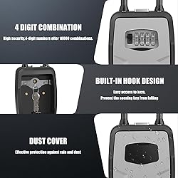 [Two Installation Methods - Door handle hung + Wall mounted] - Lock box for keys with removable shackle,you can easily hang it anywhere,including door knob, metal fence,railing and pipe,no tools needed.The package contains 4 screws,4 soft rubber screws,and user manual,you can also securely mount key lockbox on the wall of your home,office or any solid surface [Large Capacity-9 Keys Capacity ] - Suitable for up to 9 house keys.In addition to storing your keys,you can also store your car keys and bank cards.Prevent forgetting to take keys when going out.By using this 4-digit key lock box that allows you or others access the key at any time,which perfectly fits for daily activities,friends,relatives,home services, business,or other emergency entry,etc;Perfect solution storing keys for Airbnb rentals [Wide Usage] -The outdoor key lock box wall mount is small in size and compact in design,taking up less space,and is more convenient to use and keep key safe.Key storage box for house can be fixed to the wall for home,office, warehouse or elsewhere.Ideal for emergency entry,nursing home access,vacation homes,storing spare keys, cleaners.Unlike other common key lock boxes with the same shape,our key lock box is more ornamental and unique,not only can be used to store keys,but also as a decorative item! It's also great as a gift for your friends [More secure] - 4-digit password lock box,providing 10,000 password combinations.You can easily reset the desired combination at any time.High security, strong anti-theft.The old password is 0000. The key and code of each lock box are clearly stated on the packaging bag.Please note that once the password is reset,it is best to take a photo to record it,otherwise it will not be able to open it again [High Quality - Weatherproof] - The metal body of key lock box for outside is made of weatherproof zinc alloy,flush-mount and impact-resistant access cover is impervious to hammering,sawing or prying.Confidently place the keys in Diyife portable combination lockbox