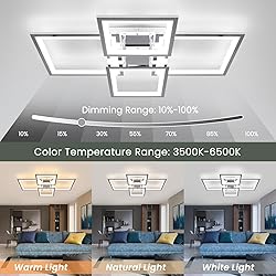 【Modern Ceiling Lamp】The modern ceiling lamps are designed by combining thickened aluminum and acrylic, which has strong light transmission and strong heat dissipation, making this ceiling lamp full of modern flavor, simple and fashionable, suitable for bedroom, living room, cloakroom, balcony, kitchen, hallway, utility room, study room, laundry room, dining room, etc. 【Specifications】LED modern ceiling lamp size: L29.92 x W23.03 x H3.74 inch, body color: chrome , voltage: 110V, power: 55W, color temperature: 3500K-6500K dimmable, applicable The range is 107-161 sq.ft. 【Dimming with Remote&APP】Modern light fixtures can control adjustable color temperature 3000K-6500K(warm white, neutral white, cold white), brightness (10%-100%). You can use the remote control and APP to adjust the color temperature and brightness according to your preference, with timer off, memory function and night light mode. 【Energy Saving & Easy to Install】The ceiling lamp uses high-quality LED chips to emit soft, bright and uniform light. No radio frequency interference, no noise and no flicker, thus better protecting eyes. You don't need to buy a light bulb to replace it, which can help you save about 85% of your electricity bill. Come with a piece of detailed manual with words and photos, and the ceiling lamp can be installed within 30 minutes. 【After-Sales Service】All products of EIDISUNY provide you with 24months warranty service. If you have any dissatisfaction with our products, please feel free to contact us and we will provide you with the best service.