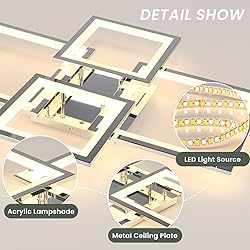 - Acrylic Modern LED Ceiling Light, Square LED Flush Mount Ceiling Light, Dimmable Kitchen Light Fixtures with Remote&APP, Close to Ceiling Lighting Fixture for Dining Room Kitchen Living Room Bedroom
