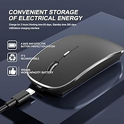 Unleash Endless Energy - Power your day with our enduring 450mAh battery that keeps you productive for up to 30-40 days on a single charge, ensuring your workflow never falters. Connect with Confidence - Embrace the freedom of dual connectivity. With Type-C and USB at your fingertips, our mouse adapts to any environment, making every device an extension of your potential. Savor the Silence - Dive into a world of tranquility with our whisper-quiet mouse buttons, reducing noise by 95% for a distraction-free zone that amplifies your focus. Ready in a Flash - Experience the ease of plug-and-play functionality. No fuss, no delays – just pull out the Nano receiver and dive into your tasks with zero downtime. Seamless Synergy - Bridge the gap between devices seamlessly. Our universally compatible mouse harmonizes with Windows, Mac, and Android, ensuring a smooth and efficient experience across all (Note: Micro-B USB charging! Please buy with caution!)