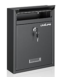 Uniclife Wall Mount Mailbox for Outside, Locking Mail Box, Large Mailbox with Key Lock, Security Mail Box for House, Safe Key Drop Box, Post Box, Steel Cash Drop Box for Home Office School, Black