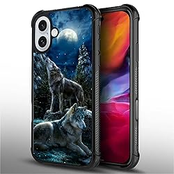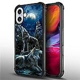 DJSOK Case for iPhone 16,Luxury Pattern Design Shockproof Rugged Cover,Cases for Man Woman-Wolf Moon Night