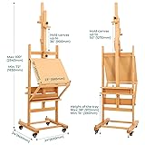 [Multifunctional 2-in-1 Design] This innovative art easel features a double-sided setup, with one side serving as a traditional wooden easel and the other as a versatile drafting desk (23" x 20"), the height & angle can be freely adjusted. Combining the essential functionalities of our multiple painting easels and desks, allows artists to easily switch between painting and sketching without needing various tools, making it an ideal professional solution for saving space in your studio or home. [Adjustable Tilt & Hold Dual Canvas] With two sliders on the central mast, you can work on two canvases simultaneously. The central mast of the easel side can be extended to 100" for larger canvas. The mast tilts forward by 20°, making it suitable for various painting mediums, like oil, acrylic & pastel. This artist easel allows you to create stunning artwork flexibly, whether you're working on detailed portraits or expansive landscapes. [Mobility & Stability] Designed with convenience in mind, 4 lockable casters make the painting easel easy to move around your studio or home. Whether you want to shift it closer to a window for natural light or rearrange your studio layout, mobility is a breeze. The two leveling bolts on the base ensure added stability when the easel is in use. This means you can focus on your creative process without worrying about the stability of your setup, even when applying pressure during drafting. [Durable & User-Friendly] Crafted from premium beech wood with carefully hand-sanded rounded corners for safety. Come with a detailed instruction manual, making your assembly a breeze. Its intuitive design ensures that even beginners can easily navigate its features. Combining durability and user-friendly functionality, this h frame easel is an excellent investment for artists of all skill levels, allowing you to create in a comfortable and supportive environment. [LIFETIME Guarantee] VISWIN is committed to creating products that can meet the needs of all those who love to paint and encourage people to enjoy the fun of creation. Shopping should be enjoyable, we provide every customer a lifetime guarantee. If you have any questions, we will try our best to satisfy you.