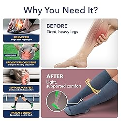IDEAL COMPRESSION SUPPORT: Available exclusively at Wellow, the ideal 18-25 mmHg compression level provides perfect support to boost circulation, reduce swelling, and help prevent varicose veins—excellent for recovery, long flights, and extended periods of standing or sitting. Designed for a calf circumference of 11.5" and stretches up to 19" for a secure yet comfortable fit. MADE WITH VISCOSE FROM BAMBOO FOR ALL DAY COMFORT: Made from ultra-soft, breathable viscose derived from bamboo, these socks offer maximum comfort by keeping feet dry and fresh, even on the longest workdays or travels. Sock length ranges from 15" to 15.8", providing full coverage while maintaining a sleek and comfortable fit. ANTI-ODOR TECH FOR FRESH FEET: Advanced anti-odor technology keeps feet fresh and odor-free, making these socks the go-to choice for extended wear during work, travel, or active days. IRRITATION-FREE COMFORT: A seamless toe and heel prevent blisters and irritation, delivering smooth, irritation-free comfort for hours, no matter how demanding your day. STRETCHES TO FIT CALVES UP TO 19 INCHES: Designed for a secure yet comfortable fit, these unisex socks provide firm, supportive compression for those seeking a regular calf size. With a stretchable design, they accommodate calf sizes up to 19" without feeling too tight or restrictive.