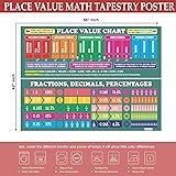 - EXTRA LARGE - Educational Math Posters Tapestry, Huge Educational Wall Hanging for Elementary and Middle School Classroom. Machine Washable and Easy to Clean, Iron at Low Temperatures. HIGHLY DETAILED - Printed on Smooth Fabric to keep its Beauty and Simplicity for Forever. High-definition Digital Printing Technology Keeps Colors Bright and Colorfast. Making it an Eye Catching addition to any Room. Perfect for Kids Room Decor. READY TO HANG - You get 56" x 42" Large Tapestry. Can use in So Many Styles! Children are always Curious and Mischievous, and you cannot Always be by Their side to Remind them. Because of that this Educational Mathematics Place Value, Fractions, Decimals Chart Posters is designed on Fabric so you can use in any manner. UNIQUE WALL ART DECOR - No matter where you use them, our Math Classroom Posters help make your child’s Learning Experience Easier. Using these Homeschool, Middle School, High School Posters make your Dream Classroom Amazing. GREAT GIFT FOR EVERY OCCASION - Your Loving one can’t forget you, it Reminds you Every Day. Tapestries are Soft and Easy to Hang. also can be use as Beach Throws, Picnic Blankets, Porch Hangings, Table Cloths, Bed Spreads, Sofa Covers etc. make learning more fun and Grip your Toddler's Attention and the Vivid Pictures will arouse their Curiosity.