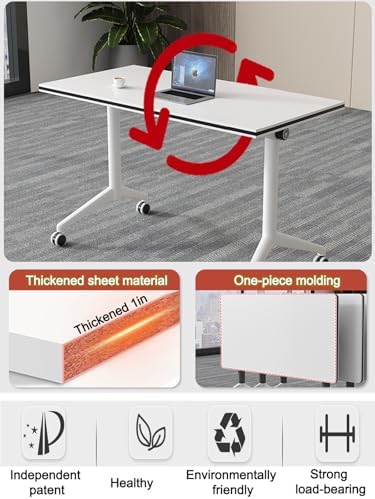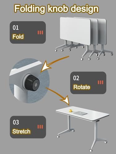 - 【Quick Flip Folding Conference Table】Our training room table is equipped with a quick fold button, allowing you to effortlessly fold and unfold the table in seconds. This feature is ideal for spaces that require quick setup and breakdown, saving you valuable time and effort. Stackable conference table can quickly switch from horizontal to vertical for convenient storage and more space saving.