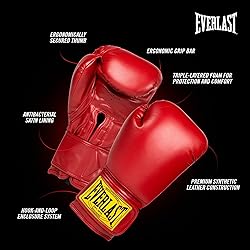 TRIPLE-LAYER PROTECTION - Advanced triple-layered foam design offers superior training protection, cushioning impacts during heavy bag workouts and sparring sessions to safeguard hands and wrists ERGONOMIC DESIGN - These boxing gloves feature an ergonomic grip bar and secured thumb, promoting proper fist formation for injury-preventing strikes and enhanced performance COMFORT AND HYGIENE - Padded interior with odor-resistant satin lining ensures a breathable, comfortable fit while reducing smell and making post-workout cleaning effortless VERSATILE PERFORMANCE - Ideal for various athletic pursuits, from boxing to general fitness routines, these gloves deliver reliable performance for beginners and seasoned fighters alike SECURE FIT - Full wrist-wrap hook-and-loop closure system provides adjustable safety and support, ensuring proper equipment fit for optimal protection during intense training