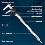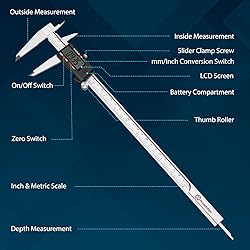 Selected Stainless Steel: The digital caliper is made of high-strength stainless steel, which is waterproof and dirt-resistant. This callipers for measuring lasts longer than calipers with plastic or carbon fiber parts. Features precision thumb rollers and locking screws to ensure smooth sliding and accurate positioning when measuring. Battery powered, comes with 3 batteries; the caliper does not have pre-installed batteries, please install the included batteries before use. Precise Measurement & Zero Setting: Caliper measuring tool measuring range: 0-6"/0-150mm, Accuracy: ±0.001" / 0.03mm, Resolution: 0.0005" / 0.01mm, meets all your measurement needs. Digital calipers slide smoothly, while the smart design allows you to easily reset to zero with the button pushing, and start a new measurement at any point on the scale, perfect for differential measurements. 4 Measurement Types: Digital caliper has 4 measurement types, measure depth, step, OD and ID through configured 2 sets of jaws and probes, fits for more usage scenarios and brings smooth measurement process. With 32 pieces of steel plug rulers with metric and imperial marked, each blade specifications are clearly marked on the surface so you can easily distinguish them and conveniently choose the right blade to measure the thickness of clearance of tappet ,spark plug, bearing, and piston ring. MM & Inch Conversion: This digital calipers 12 inch measuring tool is quick and easy to switch between 2 units with a single click, comes with a large LCD screen that is easy to use and read even in strong sunlight. Large LCD Display & Auto Off: The dial caliper's large LCD display helps you get accurate results quickly and easily, and the digital caliper automatically turns on when you slide the guide rails, and the micrometer caliper digital turns off after 5 minutes of inactivity to save power. Wide Application: This caliper extra comes with plug ruler, screwdriver, and 3 batteries for a wider range of applications and is popular among professionals and hobbyists alike, perfect for machinists, woodworkers, jewelers, craftsmen, hobbyists, DIY, auto mechanics, and more. Besides, comes with a black portable and sturdy case for easy storing, pressure-resistance and shockproof.
