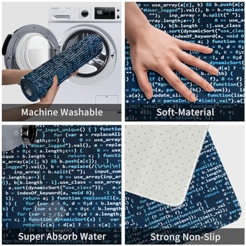 Coding Code Bathroom Rugs Programmer Bath Rug 16 x 24 Inches, Non Slip Bath Carpet, Area Mat Home Decor Accessories for Shower Floor Tub Bedroom Kitchen