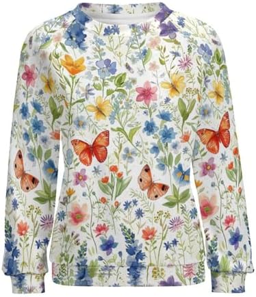 ZOCAVIA Cat Sweatshirts for Women Fall Fashion Casual Crewneck Pullover Tops Butterfly Floral Graphic Y2K Long Sleeve T Shirt