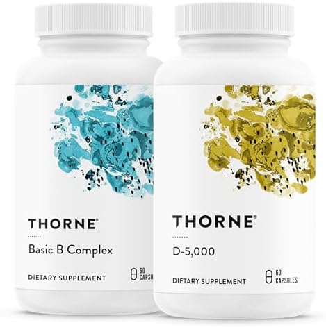 THORNE - Basic B Complex (60 Capsules) & Vitamin D-5000 (60 Capsules) Bundle - Supports Cellular Energy Production, Brain Health & Healthy Bones - Gluten, Dairy & Soy-Free