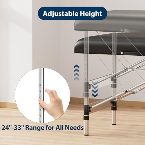 - ADJUSTABLE HEIGHT SETTINGS: Choose from 8 adjustable height options, ranging from 24" to 33". Customize the massage bed to your preferred height, ensuring comfort and efficiency whether you're standing or sitting during your massage sessions