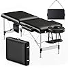 Brelley Massage Table Portable, 2-Fold Lash Bed with Side Pocket, Adjustable Height, Sturdy Aluminum Frame, Esthetician Spa Facial Tattoo Bed with Face Cradle & Carrying Bag, Black