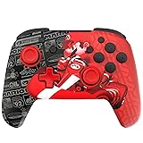 PDP Gaming REMATCH GLOW Wireless Nintendo Switch Pro Controller, Licensed, Nintendo Switch 2|Lite|OLED, Motion Controls, Rechargeable Battery Power, Glow in the Dark: Grand Prix Mario (Red and Black)