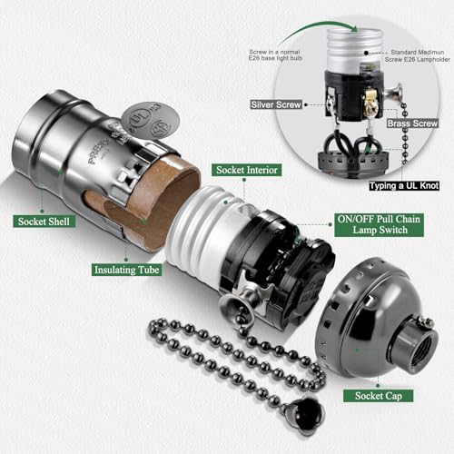 - APPLICATION - Perfect socket replacement for a vintage lamp; Rewire antique floor lamp; repair old table lamp; fix bankers lamp; switch out household lamps with pull-chain sockets; replace a lamp pull switch;Replace turn knob switch socket into pull chain ON/OFF socket switches.Great for restoring, rewiring old table and floor lamps.