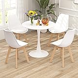 - Description:Practical & Elegant Table Set Can be a Perfect Addition to Your Home!Our 5-piece dining table set comes with a round dining table and 4 padded chairs, maximizing the daily dining enjoyment with your friends or family. The elegant and stylish table set is suitable for 4 persons to enjoy dining, coffee, afternoon tea, or reading books, which can be a perfect addition to your dining room, kitchen, office, or coffee shop decoration. Besides, all of the supporting legs are crafted with natural beech wood, ensuring great durability, and each leg is equipped with a rubber footpad on the bottom to protect your floor from scratches. Moreover, the table and chairs are supported by reinforced powder-coated steel frames, providing strong support and guaranteeing a strong loading capacity. And the large table that can load up to 199 lbs provides sufficient space to accommodate your items. Other than that, the detailed assembly manual and complete accessories are all included for easy setup. And the package is divided into 2 boxes--one is the table, another one is 4 chairs. Features:The supporting legs are made of natural beech wood with exquisite wood grainsSupported by sturdy powder-coated steel frames, anti-rust, provide strong supportThe ergonomically curved and padded seat can protect your spines for long-term seatingThe package is divided into 2 boxes, and you may receive them not at the same timeThe anti-skid rubber footpads can protect your floor from scratchingWith detailed instructions and an assembly video, easy to setupThe smooth MDF tabletop is waterproof and easy to clean Specifications:Color: Black/WhiteMaterial: Wood, Polypropylene, Polyurethane, SpongeOverall Dimensions of the Table: 32" x 30" (Dia. x H)Overall Dimensions of the Chair: 19" x 21.5" x 33" (L x W x H)Seat Height: 18.5"Weight Capacity of the Table: 200 lbsWeight Capacity of Each Chair: 330 lbsNet Weight: 58 lbsPackage Included:1 x Dining Table4 x Dining Chair1 x Instruction