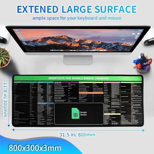 Google Sheet Shortcut Mouse Pad, Large Mousepad for Google Excel Spreadsheet, Extended Gaming Pad for Desk, 31.5”x11.8” Waterproof Anti Slip Keyboard Pad with Google Sheet Shortcuts (Windows)