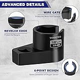 [Product Size] The O2 sensor socket has a standard 6-point shape. The socket size is 7/8" 22mm, which can fit most oxygen sensors. The square hole size is 10mm/(3/8"), suitable for 3/8" drive ratchet or breaker bar [Offset Design] The offset oxygen sensor socket allows easier access to hard-to-reach areas. As a vital automotive tool, the oxygen sensor removal tool is both convenient and practical, saving time and effort while enhancing vehicle performance [Wire Gate] The oxygen sensor socket features a 0.43inch/10.9mm wide wire gate, providing ample space to pass the wire through without causing damage. This design allows for oxygen sensor removal while keeping the wire harness connected, ensuring both convenience and safety [Premium Quality] Made from heat-treated alloy steel, this oxygen sensor socket set is built for strength and durability. Enhanced with surface phosphating and heat treatment, it provides exceptional resistance to rust and corrosion, ensuring long-lasting performance [Versatile Use] This O2 sensor removal tool is ideal for removing, inspecting, replacing, and installing oil pressure vacuum thermal oxygen sensors on most vehicles. Designed for convenience and ease of use, it saves you time and effort