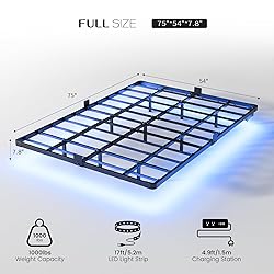 - Transform your bedroom into a futuristic oasis with the OLEVS Full Size Floating Bed Frame. This sleek metal platform elevates your sleeping experience by combining a floating design with practical features like an integrated charging station and ambient LED lighting. Say goodbye to the traditional box spring and hello to a noise-free, sturdy slumber solution that assembles effortlessly, backed by our commitment to outstanding customer support.