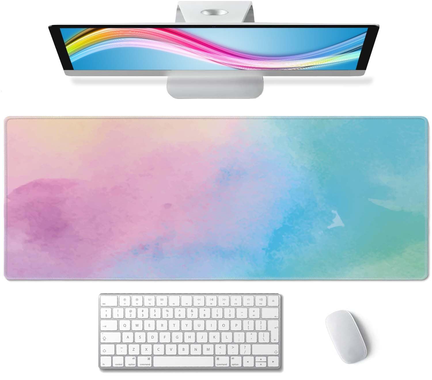 Extended Size: 31.5 x 11.8 x 0.12 inches (800mm x 300mm x3mm). Which is big enough to fit your full-sized keyboard, mouse, laptop,or other item on the desk,providing more space for professional gaming or office work. Non-Slip Rubber Base: The bottom base of the full desk mouse pad is made of good natural rubber, which is no harm to human heath. It will not have unpleasant smell compared with other wrist rest pads.Designed with dense textured rubber, the mouse pad will grip you desk firmly, avoid the random movement and provide stable operation for your mouse/keyboard. Stitched Edges: The desk mouse pad has delicate stitched edges,the latest stitching technology ensures that the mouse pad will not wear or deform during use. Ultra-smooth Surface: With Comfortable Cloth Surface and Breathable Material to the pads. Making your mice glide on its surface effortlessly, which can provide optimum speed and accurate control during your working or gaming. Great Gift Choice : A great desk organizer to keep your desktop clean, and also a beautiful desk decoration, ideal gifts for friends, colleagues, family or classmate.