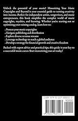 - Unlock the full potential of your music! In Monetizing Your Music Copyrights and Beyond, independent artists, songwriters, and music entrepreneurs will discover the secrets to turning their creative work into a sustainable income stream. This comprehensive guide demystifies the complex world of music copyrights, royalties, and licensing, offering clear, actionable steps to help you capitalize on every opportunity.Whether you're just starting or looking to maximize your existing catalog, this book provides invaluable insights on: Understanding and protecting your music copyrights.Navigating the world of music publishing and distribution.Exploring various revenue streams, from performance royalties to synchronization deals.Leveraging technology and online platforms to reach a global audience.Developing a long-term strategy for financial growth and creative freedom.Packed with expert advice, real-world examples, and practical tips, Monetizing Your Music Copyrights and Beyond is the ultimate resource for anyone serious about building a thriving career in the music industry. Take control of your music's future-start monetizing your art today!