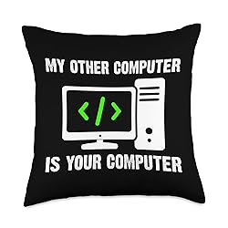 100% Polyester If you are a programmer, developer and coder, get this MY OTHER COMPUTER IS YOUR COMPUTER design for men, women, boys, girls, her, son, dad, uncle, aunt, husband, mama, girlfriend, papa. Cool clothes apparel for programming, engineering and coding geeks. Funny clothing gift idea for nerd kids, toddler who are computer whisperer, tech gaming enthusiasts and computer science fans. Cute birthday, Christmas novelty present for coders, programmers, technician, software engineer along with computer themed stuff. 100% spun-polyester fabric Double-sided print Filled with 100% polyester and sewn closed Individually cut and sewn by hand Spot clean/dry clean only