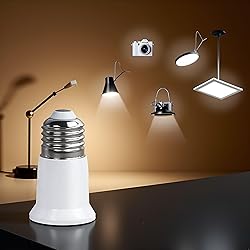 VERSATILE ADAPTER: E27 light bulb socket extender allows you to safely extend the reach of LED bulbs, lamps, fans, and cameras with E27 fittings COMPATIBILITY: Universal E27 socket design works with standard E27/Edison screw base bulbs and fixtures for broad application use EXTENDED REACH: Lamp holder adapter provides additional length between fixture and bulb for improved lighting placement and flexibility SECURE CONNECTION: Durable construction ensures stable electrical contact and reliable performance for connected devices EASY INSTALLATION: Simple screw-in design allows quick setup without any tools - just insert into existing E27 socket and attach your device