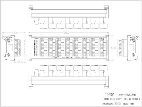 1, Pluggable Terminal Block: Pluggable screw terminal block, top wire connects, pitch 5.08mm / 0.2", strip length 7mm, screws - M2.5, Wire range 28AWG ~ 12AWG / 2.5mm square. Rated voltage 300V, rated current 10Amp(per position). 2, PCB mount Terminal Block: PCB mount screw terminal block, pitch 5.0mm/0.197", strip length 7mm, screws - M2.5, Wire range 28AWG ~ 12AWG / 2.5mm square. Rated voltage 300V, rated current 16Amp(per position). 3, High quality fireproof nylon material DIN rail mount carrier, can support width 35mm rail. FR-4 fiberglass dual copper layers PCB. 4, UL CE CQC certified terminal blocks, UL 94-V0 certified PCB, and UL CE certified DIN rail mount carrie