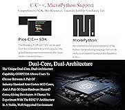 RPi Pico 2 microcontroller board (with pre-soldered header (color-coded)) is powered by Official RP2350 microcontroller chip, with unique dual-core and dual-architecture design, running up to 150 MHz, embedded 520KB of SRAM and 4MB of on-board Flash memory, as well as 26x multi-function GPIO pins Adopts unique dual-core and dual-architecture design: dual-core Arm Cortex-M33 processor and dual-core Hazard3 RISC-V processor, flexible clock running up to 150 MHz 520KB of SRAM, and 4MB of on-board Flash memory 26 × multi-function GPIO pins. 2 × SPI, 2 × I2C, 2 × UART, 3 × 12-bit ADC, 24 × controllable PWM channels Castellated module allows soldering direct to carrier boards. USB 1.1 with device and host support. Low-power sleep and dormant modes. Drag-and-drop programming using mass storage over USB. 12 × Programmable I/O (PIO) state machines for custom peripheral support For software development, either Rasp Pi's C/C++ SDK, or the MicroPython is available. There're also complete development resources and tutorials to help you get started easily, and integrate it into end products quickly