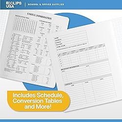 QUAD RULED COMPOSITION NOTEBOOKS - 100 sheets (200 Pages) graph paper composition notebook. Excellent quality paper with 4 x 4 squares per inch. DURABLE HARDCOVER - Standard weight hard cover and back marble graph composition notebook. STRONG REINFORCED BINDING - These composition books have a strong durable sewn center reinforced with binding tape. Providing long lasting usage. DIMENSIONS 9.75″ x 7.50″ - Standard weight composition notebooks quad ruled. Inside covers printed with class schedule and math conversion tables. PERFECT FOR SCHOOLS - Great for schools, journal use, writing projects, art, recipes, and more.
