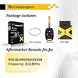 - **Worry about programming? Need a new keyless remote? **Our Kit uses state-of-the-art technology and is the first one on the market capable of programming smart keys. You just program it at home, take 5-10 min, skip the locksmith and dealer, and get a new key without paying expensive fees. Paired with keys to give you more peace of mind.NOTE: 1. Before you buy it, Please make sure that your original FCC and Buttons are the same as our product in case of money lose. 2. You must have one working remote to program the key(as to start the ignition) 3. Need to find locksmith or dealer to cut the blade 4. Need to program remote control and chip separatelyThis remote is replacememnt for FCC ID: KR55WK49308 Frequency: 313.8MHZCompatibility :For 2008-2012 Honda Accord Sedan (will not work for Coupes) For 2009-2015 Honda Pilot (trunk will not work for Power Liftgate but it will work for the Glass Release) For 2008-2012 Honda Accord Sedan (will not work for Coupes) For 2009-2015 Honda Pilot (trunk will not work on Touring models)Disclaimer: Remote2program device is only used by car owners to program their own vehicles, and other actions are not affiliated with Remote2program
