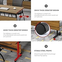 Quick Folding Design-----The conference folding table is an excellent solution for your training and conference rooms. There are rotary switches on both sides of the table. It can be folded forward and backward with just a slight twist. Not only can it be easily carried, but it can also be folded when not in use. Stack together and store in the corner to save your space. Meet Different Needs ---- You can arranget the folable conference tables in any combination according to your own needs,it could be a large gaming table, with plenty of space for your gaming gear,when they as office tables, allows taking full advantage of your abode office workspace,simple design, super easy to install with detailed instructions,all hardware required for installation is included,if you have a problem when assembling, we will provide instruction and help as well. Perfect Size-----We have different size for the conference table , you can choose the proper size accoding to your meeting needs .Stylish and sleek design ideal for any office, conference room, meeting room and study room, reception rooms and training rooms. just turn the knob and the table can be flipped over easily, saving a lot of space and making it easy to store and carry. Additional Design------ Each conference tables is equipped with 4 universal wheels, which can quickly rotate 372° and move to any desired position. It is equipped with rubber coils to avoid making harsh noises when moving. The desk's spacious surface and legroom make it a more comfortable place to work, making it the best choice for people who work or study at a desk for long periods of time. Appearance Design-----The conference table desktop adopts a thickened design, PVC smooth edge sealing, E13 grade board, resistant to scratches, easy to clean, and free from water and oil. It is heat-resistant and high-temperature resistant. The material of the folding Flip Top Mobile Training Table table legs is aluminum alloy, which is more stable and durable,whether in the office or in the home environment, are very suitable.