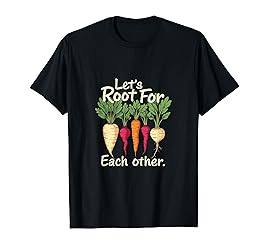 Mutual Support and Encouragement design. Show your love for community and support with this inspiring message. Perfect for those who believe in lifting each other up and fostering a sense of unity and teamwork. Celebrate togetherness and mutual support with vibrant root vegetables. It's a reminder that we all grow better when we root for one another, making it ideal for gatherings and everyday wear. Lightweight, Classic fit, Double-needle sleeve and bottom hem