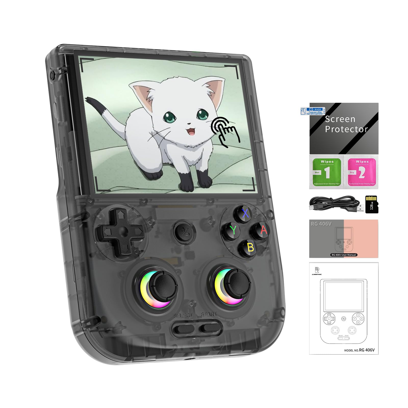 RG406V Retro Handheld Game Console 4-inch IPS Multi-touch Screen Android 13 5500mAh RG 406V Video Games Built-in Hall Joystick RGB Lighting Support 1080p DP Output WIFI Bluetooth (RG406V Black TR)