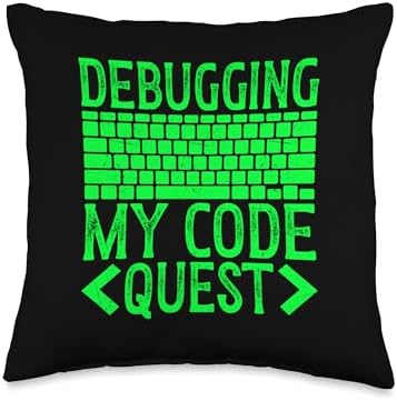 Debugging My Quest Funny Programmer Humor Coding Coder Throw Pillow