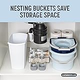 - Keep your home clean and tidy with the Casabella Clean Water Spin Mop Set and Mop Head Refill. Featuring 2 large buckets that work together, this spin mop system allows you to separate clean water from dirty water for easy and efficient mopping around the entire home. The easy-to-use pedal spinner and spinning handle make wringing the mop a breeze, and the bucket handles combine to offer a firm, comfortable hold for easy transportation. Designed for an optimal cleaning performance, our super absorbent microfiber provides a deep clean with just clean water, and the mop head's unique hex design effortlessly fits into corners for a thorough clean every time. The removable splash guard and integrated scraping tool provide additional convenience during both small and heavy-duty cleaning jobs. With the helpful built-in cleaning solution measuring cup, you can ensure correct ratios every time to save on cleaning solution, and the visible max fill line holds up to 1.25 gallons of solution. The Casabella Clean Water Spin Mop features two buckets that work together, allowing for separation of clean and dirty water, making it easier to fill with clean water in any sink and discard dirty when done, and for easy storage anywhere. It has an easy-to-use pedal spinner and spinning handle grip while also featuring a removable splash guard for cleaning. The built-in cleaning solution measuring cup helps get your ratio right to save on cleaning solution, and the visible max fill line allows up to 1.25 gallons. When carrying, the handles combine to form one with a comfortable grip making it easy to transport the mop around the home while cleaning, and our super absorbent microfiber provides a deep clean with just clean water.