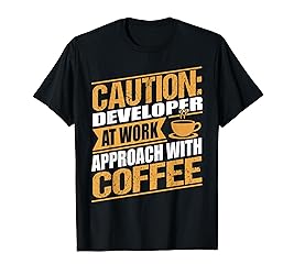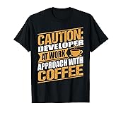 - Funny Developer graphic for men and women featuring the phrase "Caution Developer Approach With Coffee". Developer design for coffee lover programmer, techie, data geek, or coder boyfriend, husband, dad, uncle or grandpa.