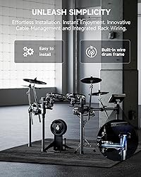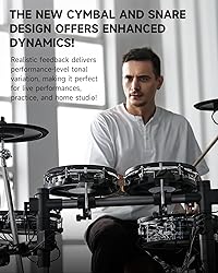 【Intuitive 7-Inch Touch Screen】Experience seamless control with a user-friendly 7-inch touch screen designed for easy navigation, mimicking tablet operation—no learning curve required! 【Professional Drum Sounds and Effects】Elevate your sound with Donner's advanced drum kits, featuring 16-layer, 16-bit audio for dynamic richness and paired with EQ tools and effects that amplify your artistic expression. 【Comprehensive Practice Features】Master your skills with over 160 practice pieces and real-time error correction, plus built-in recording functionality to capture every session and expand your creative repertoire with WAV and MIDI export options. 【Enhanced Playability】The Donner Beat Max is equipped with 12-inch pads and 14-inch cymbals that closely replicate the feel of acoustic drums. Enjoy a broader striking area and accurate triggers, ensuring an authentic and immersive performance every time you play. 【Sleek and Efficient Design】Enjoy a clutter-free setup with an integrated framework that houses all wiring, ensuring quick adjustments and a streamlined look—perfect for live performances without the hassle of exposed cables.