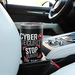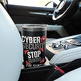 Cyber Security IT design. Cyber Security Stop Clicking On Shit This merchandise design with a funny cybersecurity phrase is made for programmers and engineers who want to work on malware. Perfect present for someone who loves computer science. Dual wall insulated: keeps beverages hot or cold Stainless Steel, BPA Free Leak proof lid with clear slider