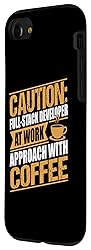 Funny full-stack dev graphic for men and women featuring the phrase "Caution Full-Stack Developer Approach With Coffee". Full-Stack developer design for coffee lover programmer, developer, coder or fullstack dev boyfriend, husband, dad, uncle or grandpa. Two-part protective case made from a premium scratch-resistant polycarbonate shell and shock absorbent TPU liner protects against drops Printed in the USA Easy installation