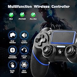 Performance:Support the game vibrate function, according to the game state and the game scene to produce the strong and weak different vibration effect.It's equipped with latest motion sensing technology,built-in three-axis gyroscope and three-axis accelerator.With the three features,it can detect omnidirectional dynamic information including Roll,Pitch and Yaw. New Features:Built-in speaker and 3.5mm stereo audio jack, Multi touch and clickable touch pad, Integrated light bar offer exciting experience and interact with your games Precision Control:Improved ergonomics means it's more comfortable to hold, The feel, shape, and sensitivity of this controller's analog sticks and trigger buttons have been enhanced to offer players absolute control for all games on PS-4. The controllers are made with highly durable materials, and its ergonomic shape fits comfortably in your hand, making it more comfortable to use than usual. The grip area has a textured surface to prevent slipping due to sweaty hands. The wireless controllers are compatible with PS-4/Pro/PS-4 Slim. The PS-4 controller features a new design and a unique appearance. It uses advanced technology to enhance your gaming experience and control.