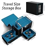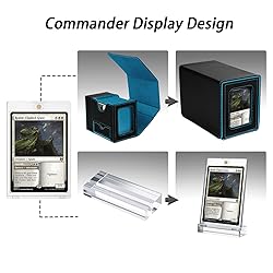 Stepane MTG Deck Box for Commander Display with Dice Tower, Fits 100 Double-Sleeved Cards for TCG/PTCG, Multifunctional Card Storage Box, with a 35PT Magnetic Card Holder (Black Cyan)