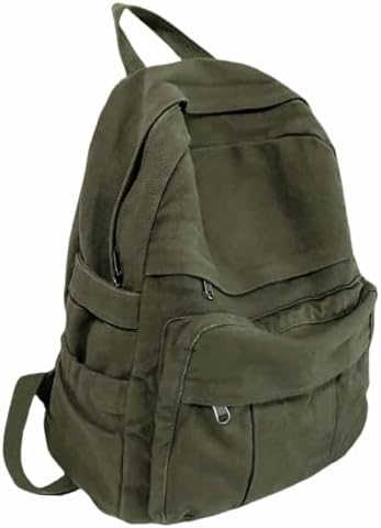Military Green Canvas Backpack for Women & Men Retro Aesthetic Rucksack Basic Backpack for High School/College Students Travel Laptop Bag