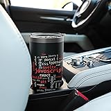 Javascript computer programming design for coders, developers and geeks. Get this frontend skills wordart design that features javascript, node, nodejs used by frontend coders, programmers, developers and engineers. Javascript coder text design for js software engineers and developers, showing all the coding skills required for a full-stack javascript engineer, including html, json, nosql, react.js, vue.js, angular.js, git, regex and typescript. Dual wall insulated: keeps beverages hot or cold Stainless Steel, BPA Free Leak proof lid with clear slider
