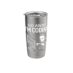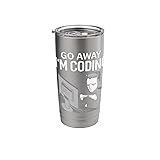 Go Away, I'm Coding. A coder is sitting infront of the screen and coding. Computer programmer design perfect if you love programming. Perfect for any computer sciencetist, computer engineer and tech guys. Get ready and make your computer beep boop. Dual wall insulated: keeps beverages hot or cold Stainless Steel, BPA Free Leak proof lid with clear slider