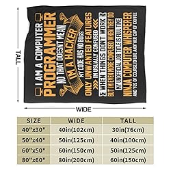 PREMIUM QUALITY FABRIC - This I Am A Computer Programmer Blanket Is Made Of 100% Premium Quality Facecloth Which Is Super Soft Fluffy Durable And Lightweight To Keep You Warm On Cold Days. MULTIPLE SIZES - Our Blankets Are Available In 40 "X30" 50 "X40" 60 "X50" 80 "X60" Sizes, Which Will Not Only Keep You Warm, But Also Protect Your Beds And Sofas From Dust And Stains. MULTIPLE OCCASIONS - This Elegant, Fluffy Blanket Is Perfect For Snuggling Up On The Couch, Bed, Or Chair, Or For Taking To The Movies Or To The Park The Unique Design Can Also Transform Any Room Into A Stylish Space! PERFECT GIFT - This Blanket Is Perfect For A Friend'S Birthday, Mother'S Day, Father'S Day, Christmas And Other Holidays. This Super Soft Blanket Will Bring Warmth To Your Friend And Also Promote Your Relationship With Friends And Relatives. SINCERE SERVICE - If You Have Any Questions, Please Contact Us Your Satisfaction Is Our Purpose!