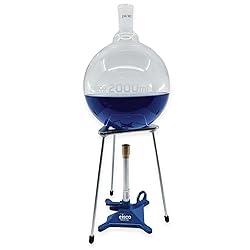 LARGE CAPACITY FLASK || 2000 mL flat-bottom boiling flask ideal for handling large volumes during distillation, extraction, and chemical reactions 24/40 GROUND JOINT || Standard 24/40 ground joint ensures secure connections with condensers, adapters, and other lab apparatus BOROSILICATE GLASS || Constructed from heat and chemical-resistant borosilicate glass, perfect for high-temperature reactions and distillation STABLE FLAT BOTTOM DESIGN || The flat bottom provides stability on hot plates or other heating devices, eliminating the need for additional supports MULTIPURPOSE USE || Suitable for distillation, reflux, solvent recovery, chemical synthesis, and large-scale reaction setups